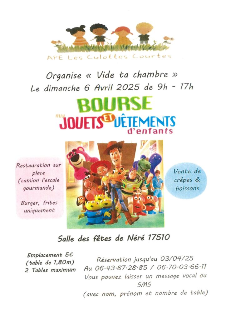 BOURSE AUX JOUETS ET VETEMENTS RENDEZ-VOUS le 6 avril 2025 de 9h à 17h à la Salle des Fêtes de Néré. Plus d’informations : + Ajouter à mon Agenda Google + iCal / Outlook export Date 19 Mar 2025 Expiré ! Heure 08:00 - 18:00 Catégorie ÉVÈNEMENTS Partagez cet événement décembre 2025 Déc 17 2025 FÊTE DE NOËL Place de la Mairie Pas d'événement actuellement programmé.