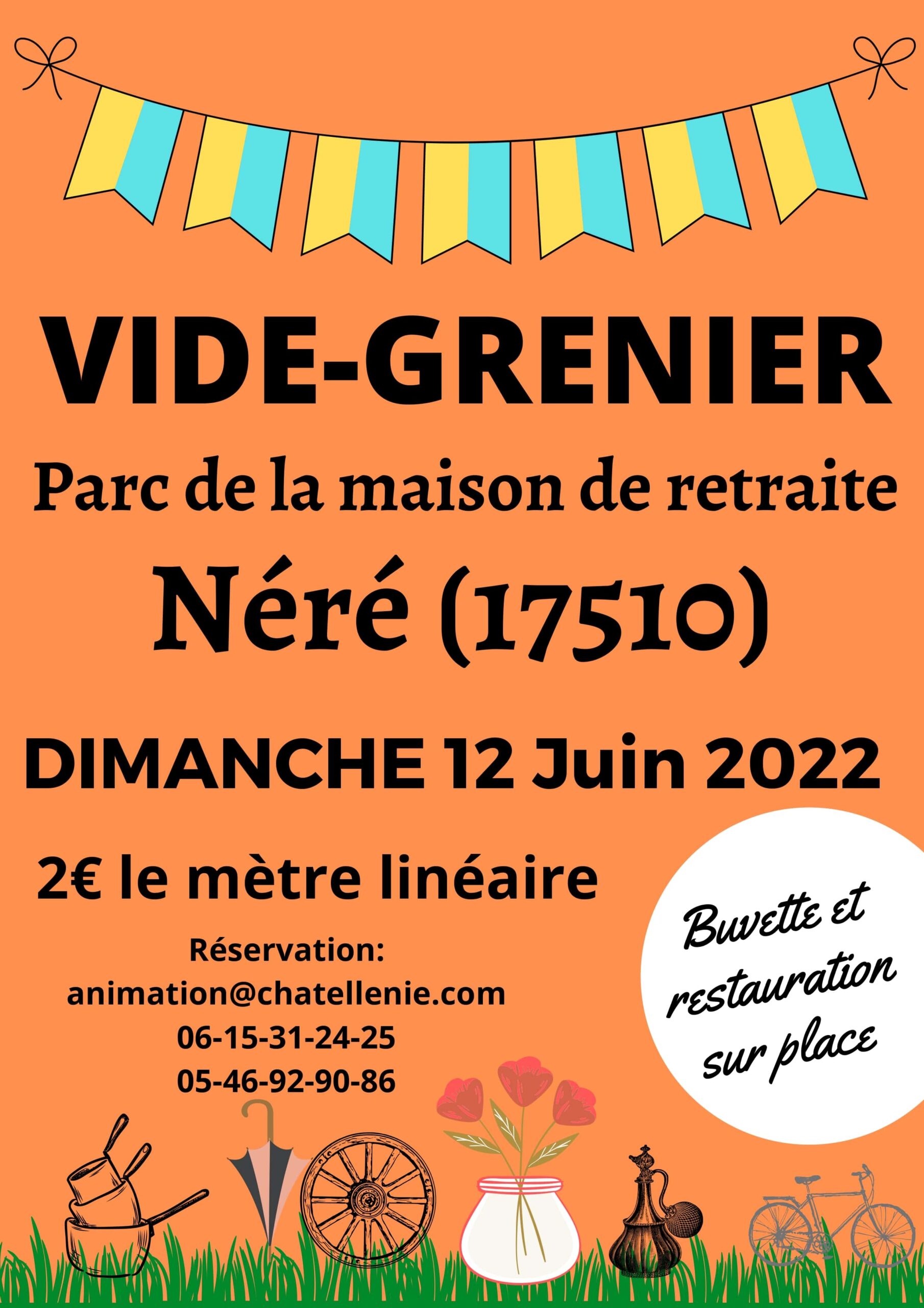 Brocante annulÉe Brocante : parc de La Châtellenie EHPAD, buvette, restauration rapide + Ajouter à mon Agenda Google + iCal / Outlook export Date 12 Juin 2022 Expiré ! Heure Ajouter un jour Tarif 2.00€ Lieu EHPAD La Châtellenie Néré Organisateur Les Roses Blanches Téléphone 0546336019 Email animation@chatellenie.com Partagez cet événement décembre 2025 Déc 17 2025 FÊTE DE NOËL Place de la Mairie Pas d'événement actuellement programmé.