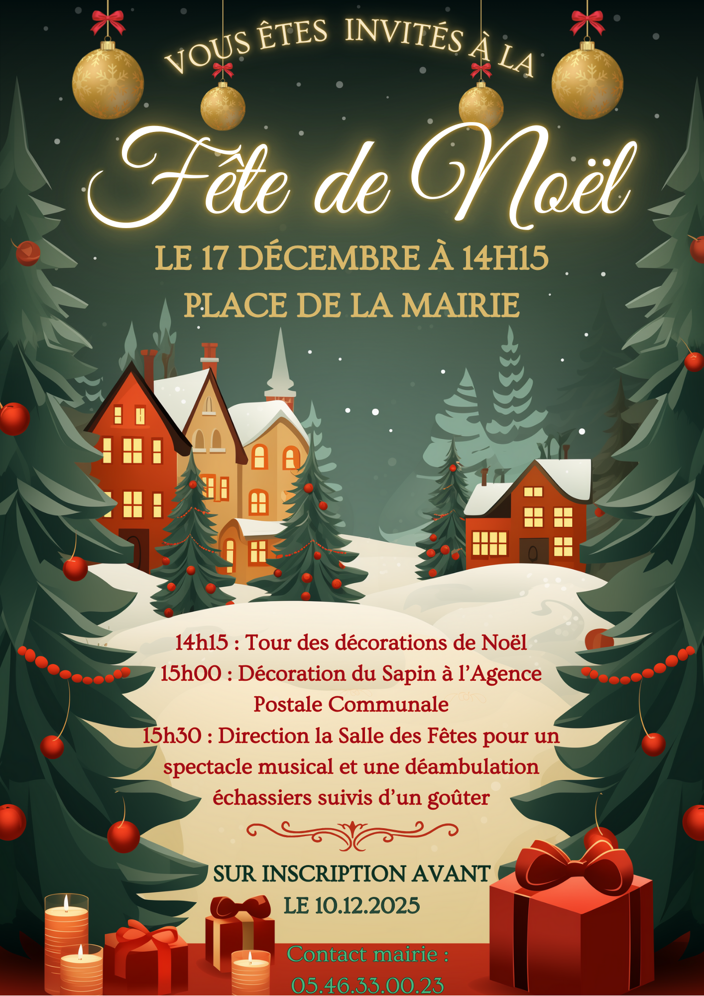 La Commune de Néré est heureuse de convier vos enfants et petits-enfants à sa Fête de Noël du 17 décembre 2025 ! Rendez-vous sur la place de la mairie !