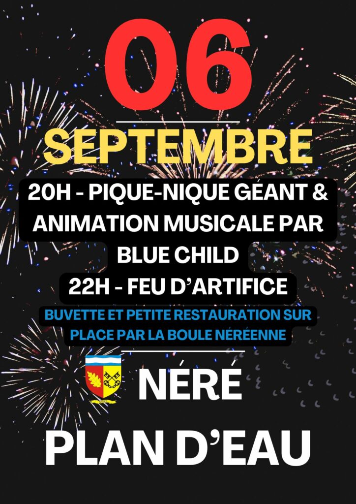 FEU d’artifice – 06 septembre 2025 Petite restauration et buvette sur place ! + Ajouter à mon Agenda Google + iCal / Outlook export Date 01 Sep 2025 Expiré ! Heure 08:00 - 18:00 Partagez cet événement Pas d'événement actuellement programmé.