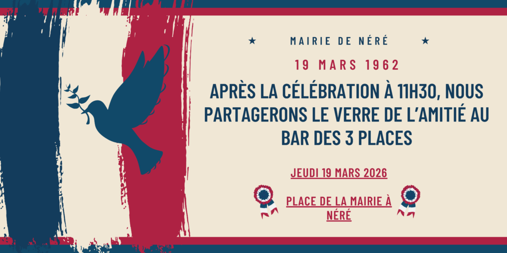 Vous êtes conviés à la Cérémonie du 19 mars 1962 – Place de la Mairie à 11h30.