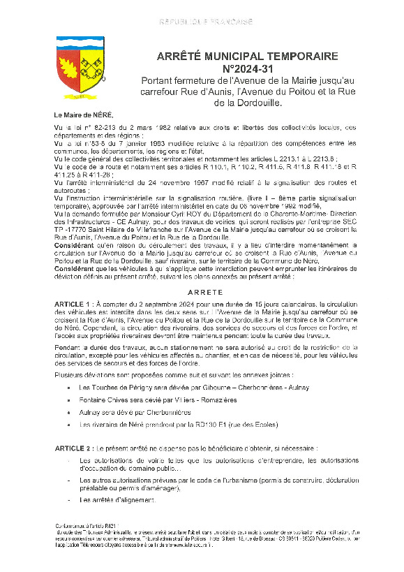 Arrêté temporaire 2024-31 interdiction circulation travaux DI